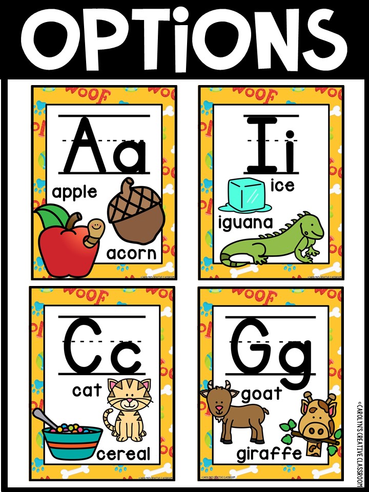You can use the letter posters during small group, whole group, circle, and center time. It is a great addition to any literacy center or Daily 5 word work center! Hang them on the wall, use them in a variety of centers or make them self-correcting cards. You can print 1 per page, half size (2 to a page) or smaller for flash cards by printing multiple to a page!