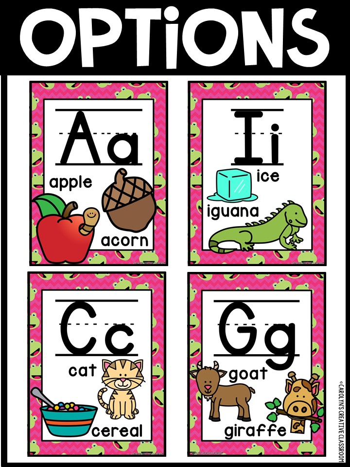 You can use the letter posters during small group, whole group, circle, and center time. It is a great addition to any literacy center or Daily 5 word work center! Hang them on the wall, use them in a variety of centers or make them self-correcting cards. You can print 1 per page, half size (2 to a page) or smaller for flash cards by printing multiple to a page!