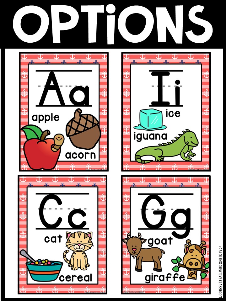 These alphabet posters have been designed for a preschool, pre-k, or kindergarten classroom. Just print, cut, and laminate!