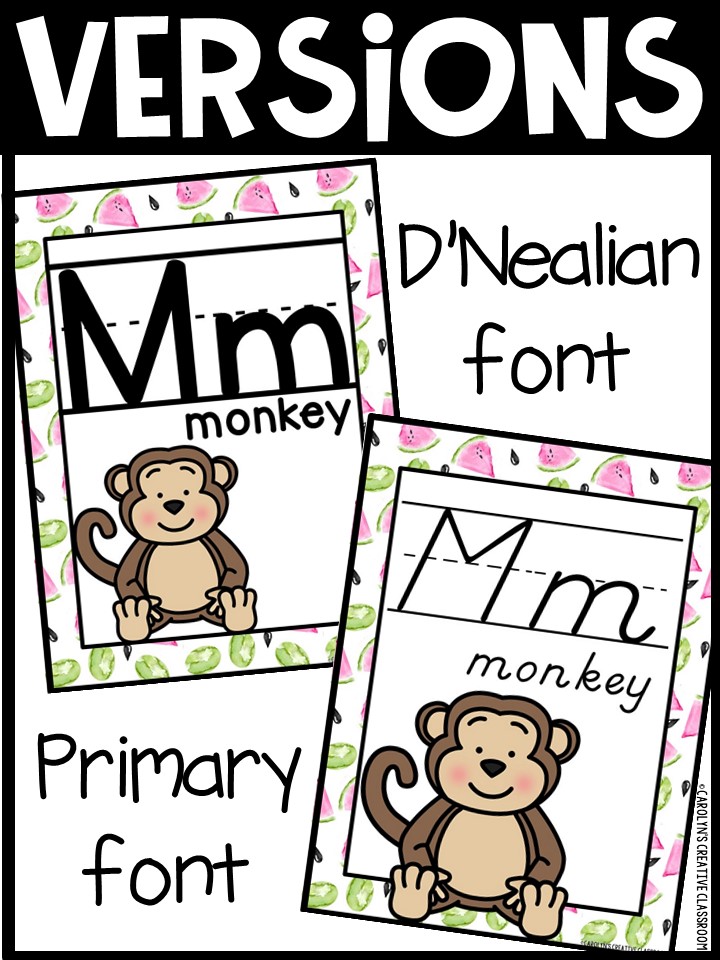You can use the letter posters during small group, whole group, circle, and center time. It is a great addition to any literacy center or Daily 5 word work center! Hang them on the wall, use them in a variety of centers or make them self-correcting cards. You can print 1 per page, half size (2 to a page) or smaller for flash cards by printing multiple to a page!