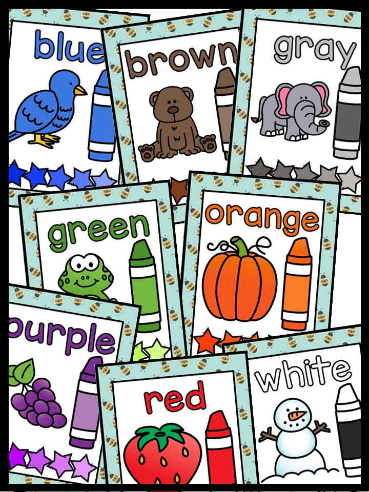 Find the PERFECT color posters to match your classroom theme! These color posters include color name, clipart picture, crayon, and stars with a matching color pallet.