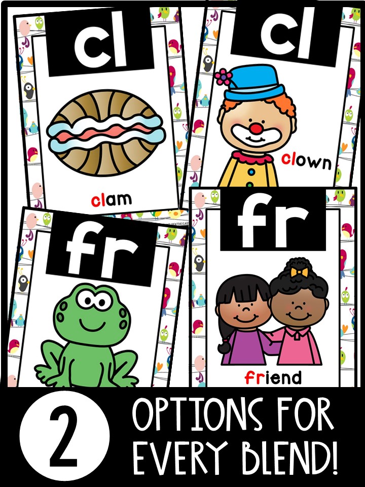 Each card displays the blend, a coordinating brightly colored image/images, and the appropriate text label.