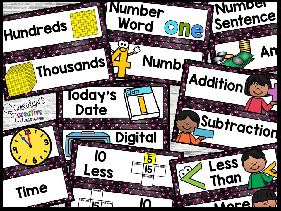 These focus wall headers are great for many different Math Series! You can put them in pocket charts, on the wall, on a white board and write the skill/strategy/etc. each week! I make mine magnetic so I can manipulate the header wherever on the whiteboard. You may also staple this to a Bulletin Board and add Anchor Charts below. So many uses!! This can be used in MANY different grade levels as well!