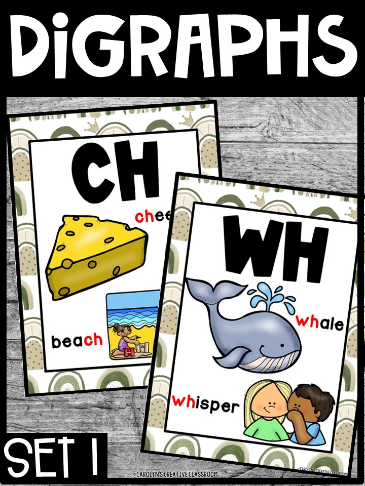 - Hang the cards to in your classroom as a decoration/reference to display the digraphs on a sound wall/