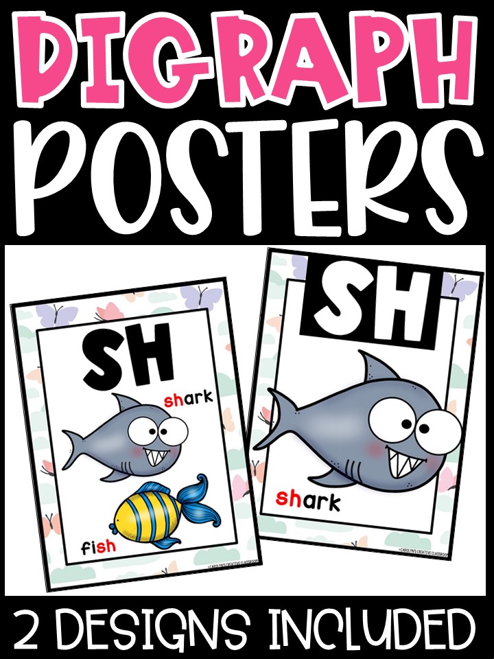 Foster digraph recognition and phonics development with these posters. Each card displays the digraph, a coordinating brightly colored image/images, and the appropriate text label.