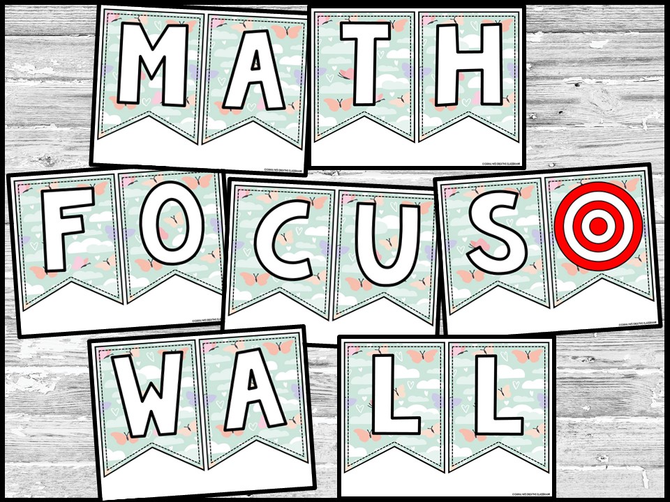 With this set, you will get the banner that says ” Math Focus Wall” . (Half sheet size)