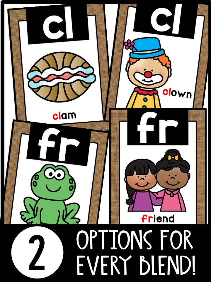 Each card displays the blend, a coordinating brightly colored image/images, and the appropriate text label.