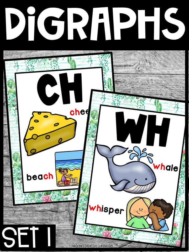 - Hang the cards to in your classroom as a decoration/reference to display the digraphs on a sound wall/