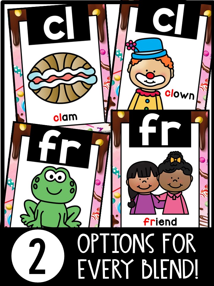 Each card displays the blend, a coordinating brightly colored image/images, and the appropriate text label.