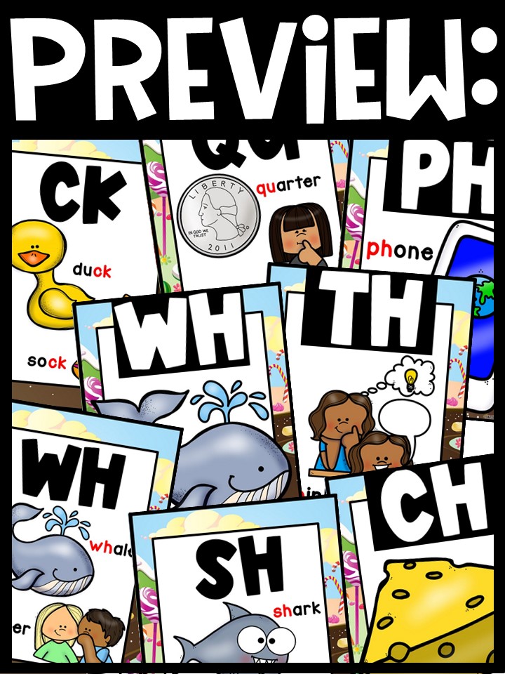 - Hang the cards to in your classroom as a decoration/reference to display the digraphs on a sound wall/