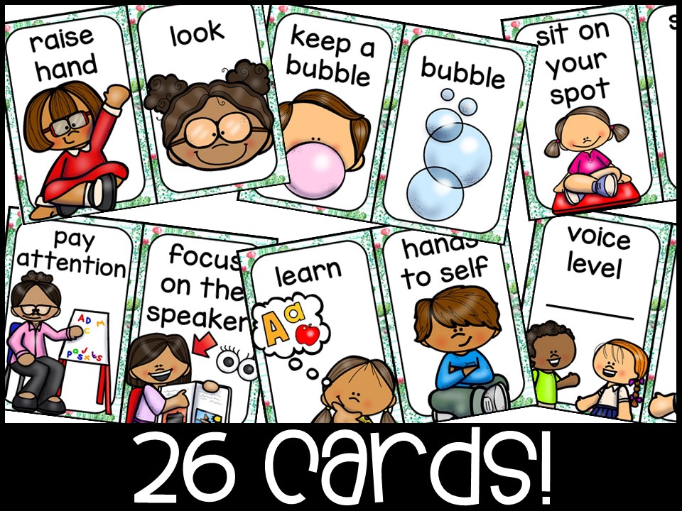 - Rule Cards (Pg 15-27) (In full color) At the beginning of the year, I teach what my carpet/circle time expectations are (what it sounds and looks like). These are developmentally appropriate rules with clip art pictures!
