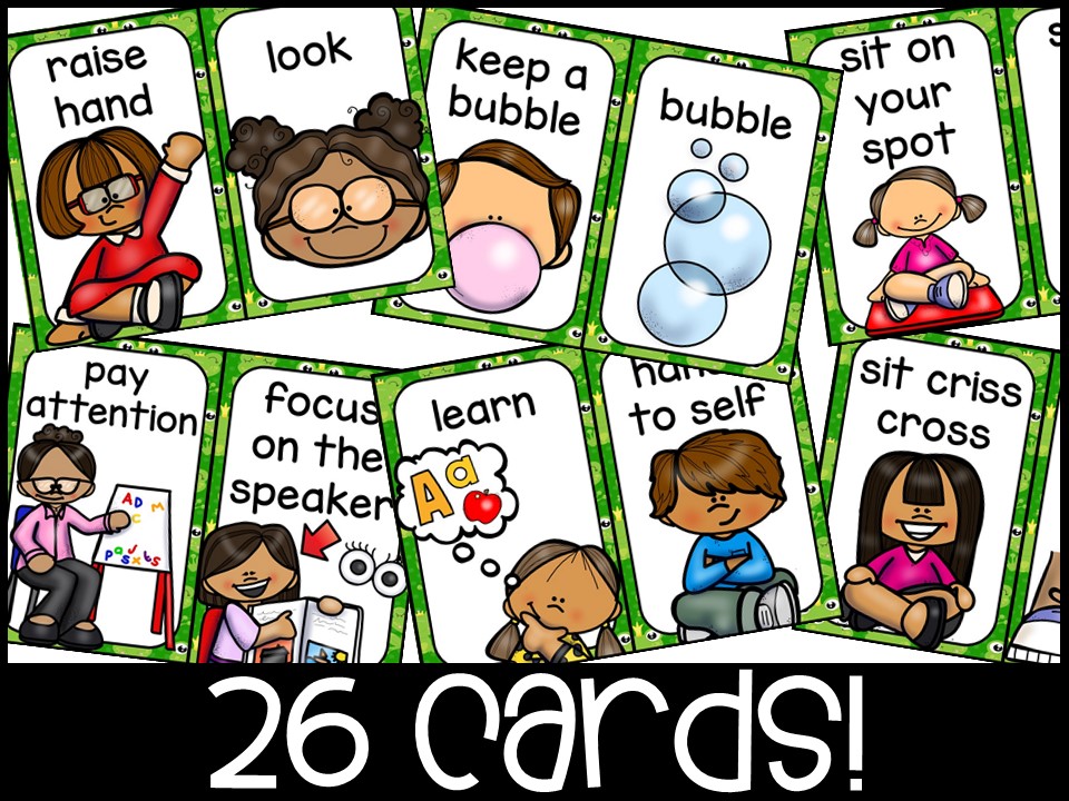 - Rule Cards (Pg 15-27) (In full color) At the beginning of the year, I teach what my carpet/circle time expectations are (what it sounds and looks like). These are developmentally appropriate rules with clip art pictures!