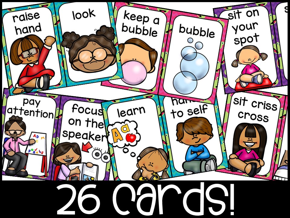 - Rule Cards (Pg 15-27) (In full color) At the beginning of the year, I teach what my carpet/circle time expectations are (what it sounds and looks like). These are developmentally appropriate rules with clip art pictures!