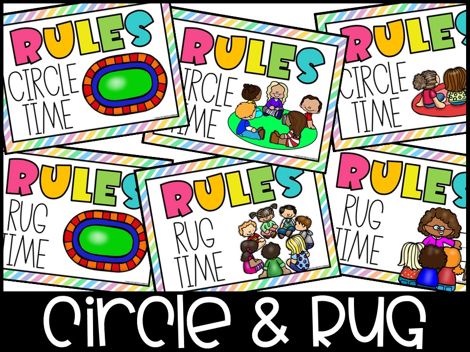 - Rule Title Posters (Pg 5-14) This poster is perfect for the top of the rule posters. There are variety to chose from (RUG TIME and CIRCLE TIME)
