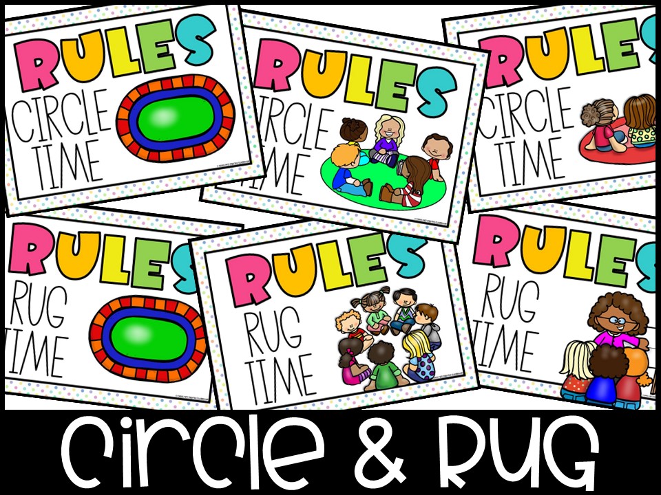 - Rule Title Posters (Pg 5-14) This poster is perfect for the top of the rule posters. There are variety to chose from (RUG TIME and CIRCLE TIME)
