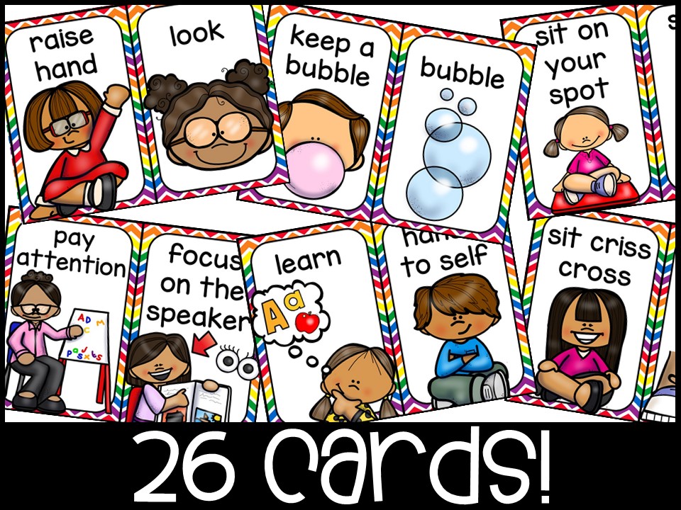 - Rule Cards (Pg 15-27) (In full color) At the beginning of the year, I teach what my carpet/circle time expectations are (what it sounds and looks like). These are developmentally appropriate rules with clip art pictures!