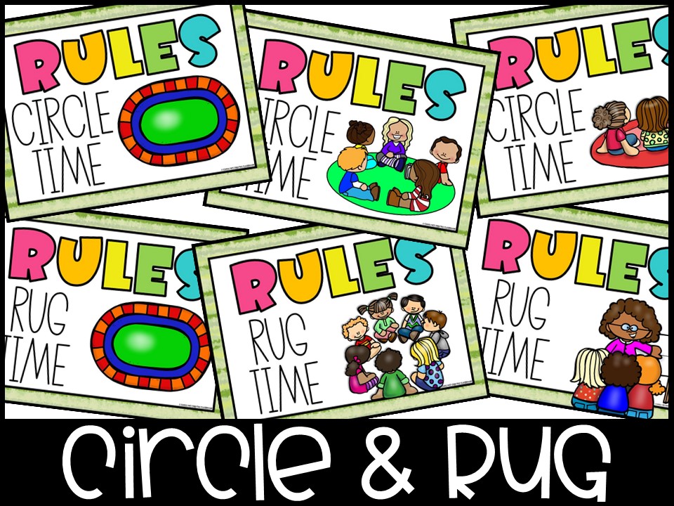 - Rule Title Posters (Pg 5-14) This poster is perfect for the top of the rule posters. There are variety to chose from (RUG TIME and CIRCLE TIME)