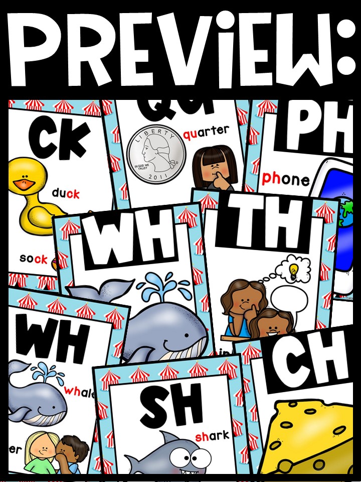 - Hang the cards to in your classroom as a decoration/reference to display the digraphs on a sound wall/