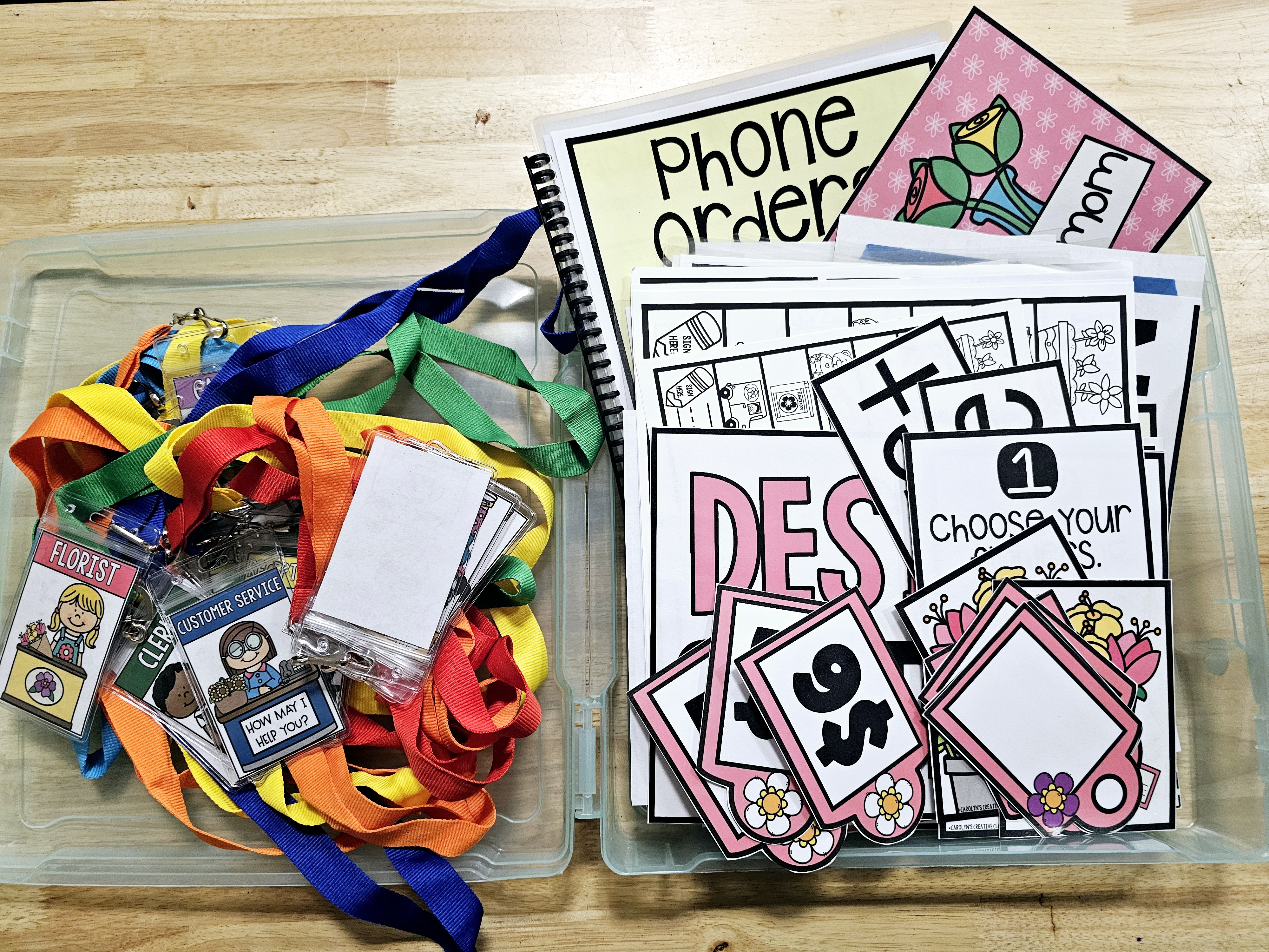 Already laminated and prepped dramatic play. Everything you need to set it up, plus the container!