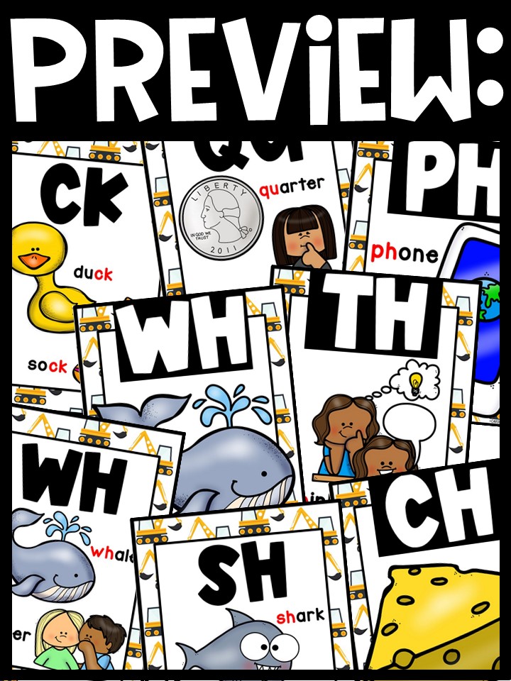 - Hang the cards to in your classroom as a decoration/reference to display the digraphs on a sound wall/