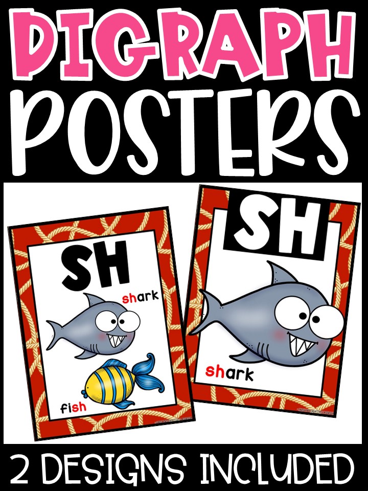 Foster digraph recognition and phonics development with these posters. Each card displays the digraph, a coordinating brightly colored image/images, and the appropriate text label.