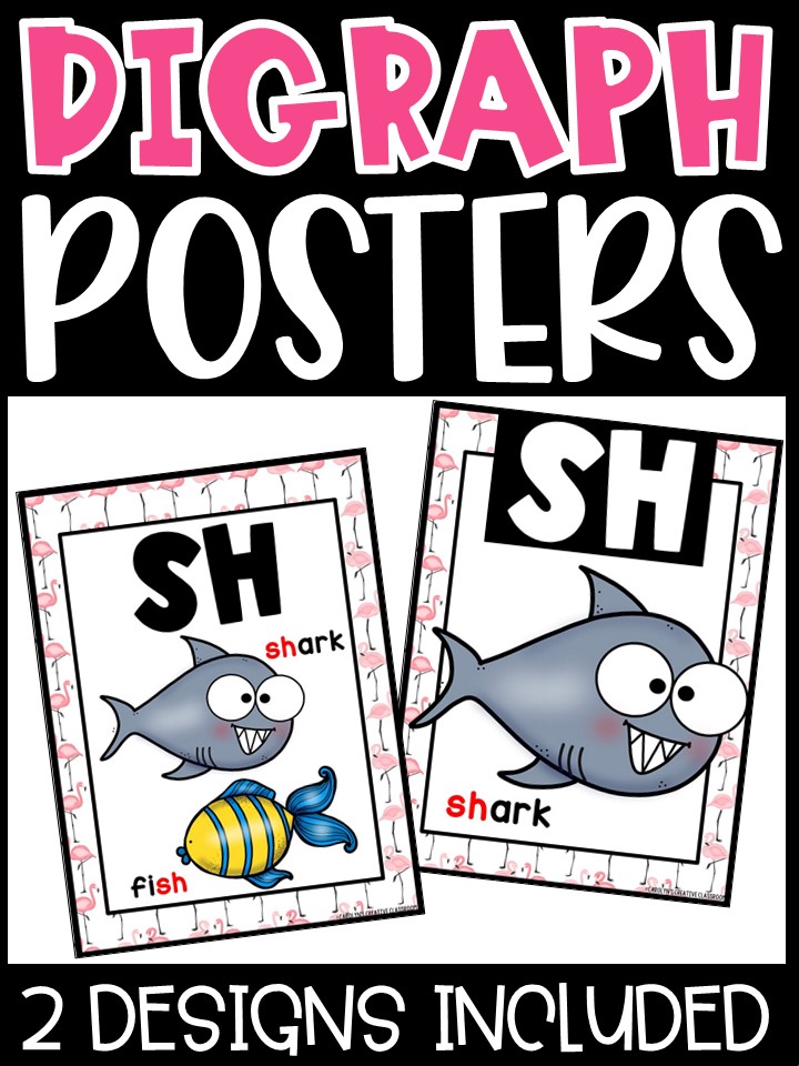 Foster digraph recognition and phonics development with these posters. Each card displays the digraph, a coordinating brightly colored image/images, and the appropriate text label.