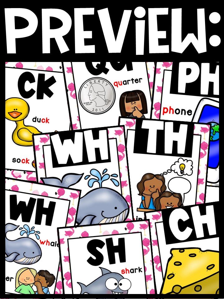 - Hang the cards to in your classroom as a decoration/reference to display the digraphs on a sound wall/