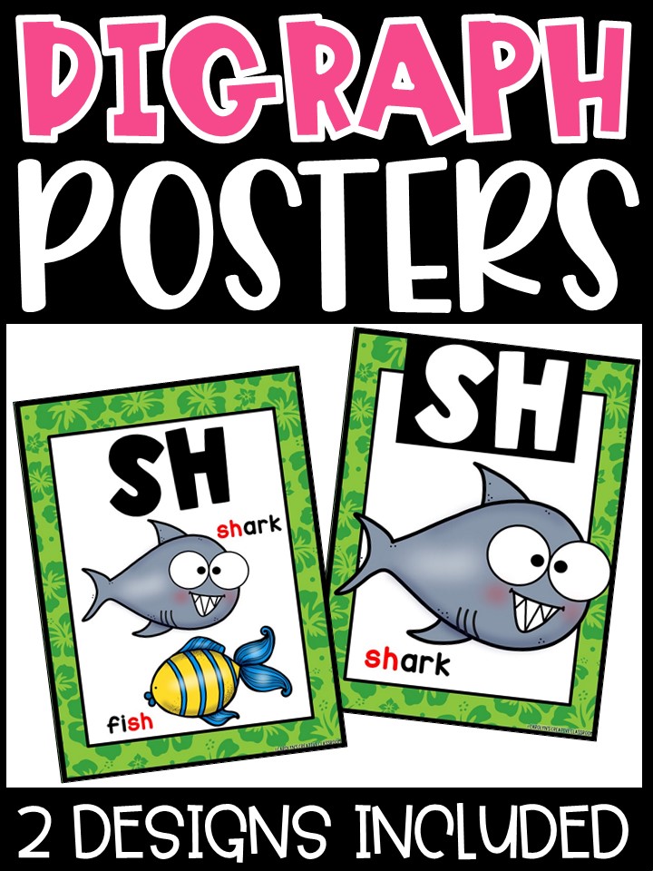 Foster digraph recognition and phonics development with these posters. Each card displays the digraph, a coordinating brightly colored image/images, and the appropriate text label.