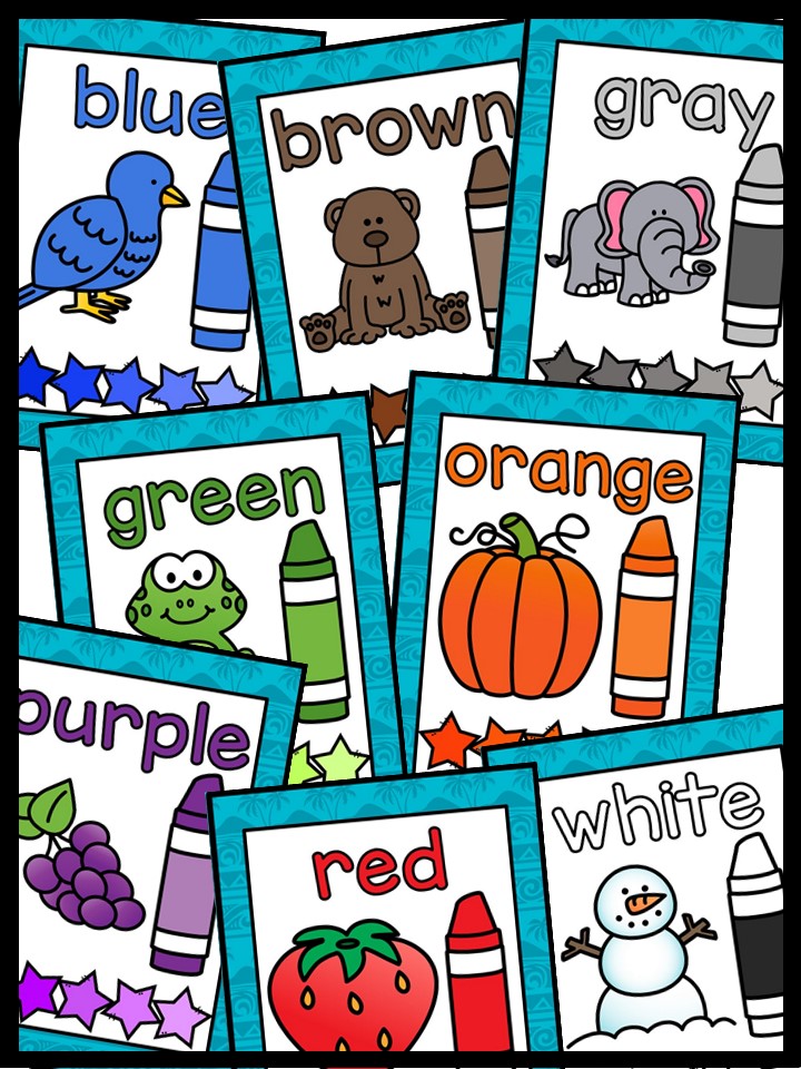 Find the PERFECT color posters to match your classroom theme! These color posters include color name, clipart picture, crayon, and stars with a matching color pallet.