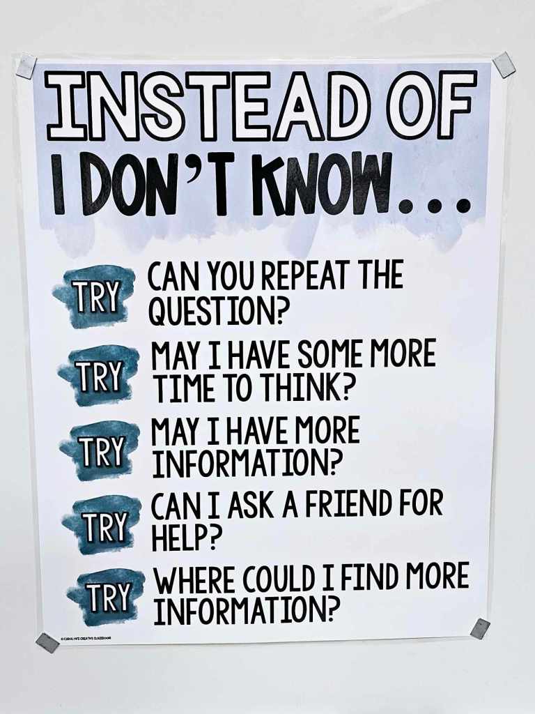 Instead of I don’t Know Anchor Chart [Hard Good] – Option 4