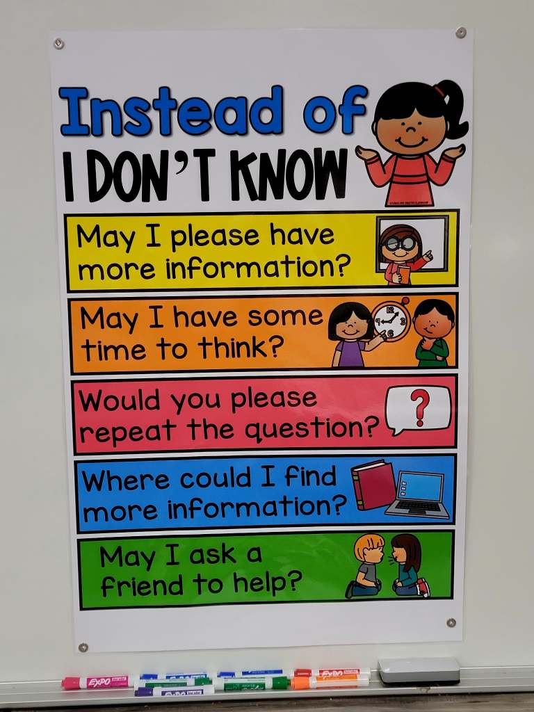 Instead of I don’t Know Anchor Chart [Hard Good] – Option 1