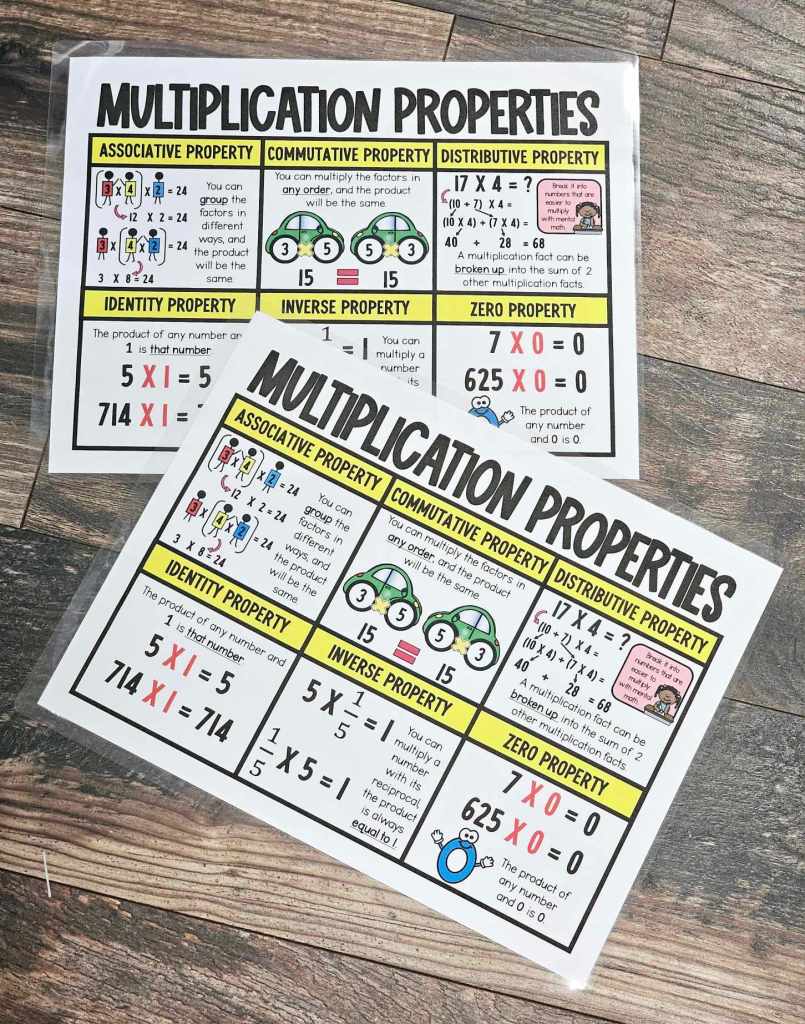 MINI Anchor Charts: Multiplication Properties – Option #2