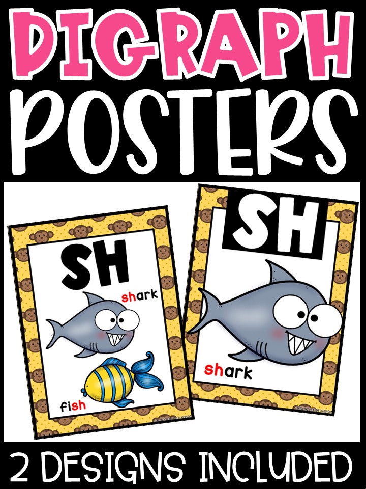 Foster digraph recognition and phonics development with these posters. Each card displays the digraph, a coordinating brightly colored image/images, and the appropriate text label.