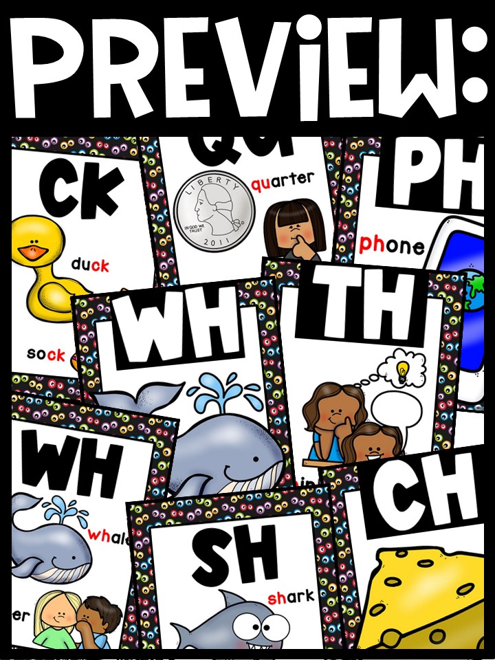 - Hang the cards to in your classroom as a decoration/reference to display the digraphs on a sound wall/