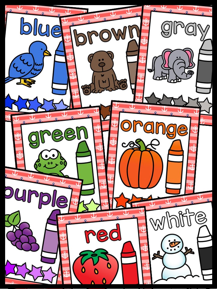 Find the PERFECT color posters to match your classroom theme! These color posters include color name, clipart picture, crayon, and stars with a matching color pallet.
