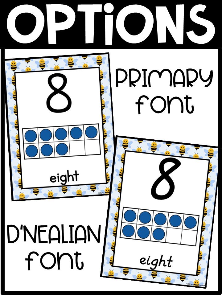 - Each Poster includes number, number word, and ten frames in rainbow colors.