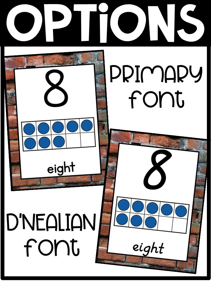 - Each Poster includes number, number word, and ten frames in rainbow colors.