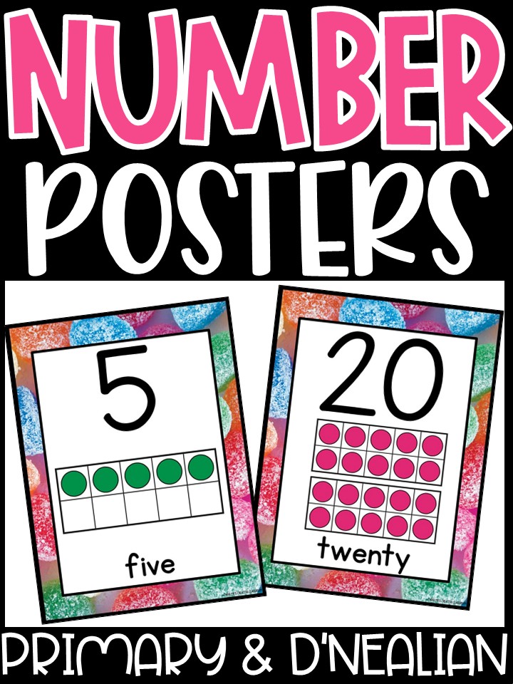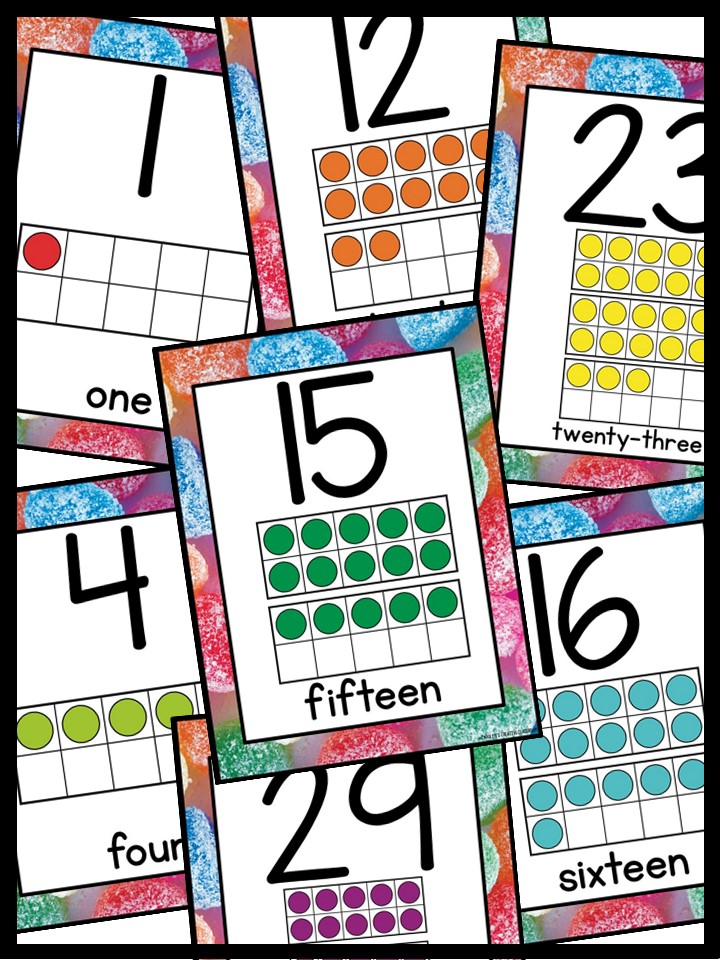 Use these number posters to teach number recognition in a fun and engaging way. You can use the number posters and cards during small group, whole group, circle/rug time, and center time.