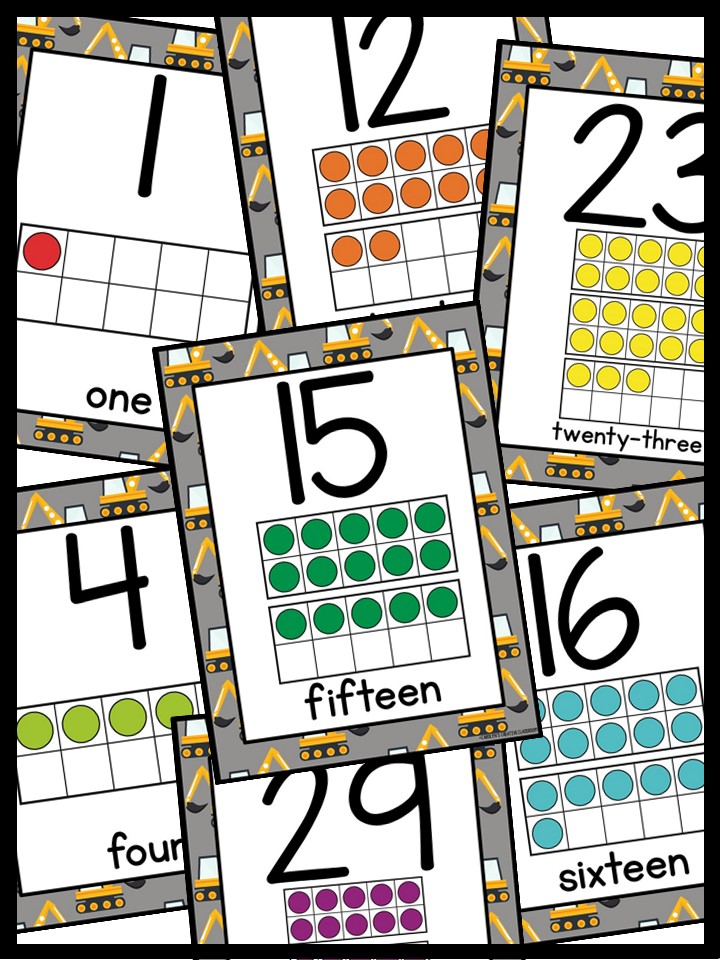 Use these number posters to teach number recognition in a fun and engaging way. You can use the number posters and cards during small group, whole group, circle/rug time, and center time.
