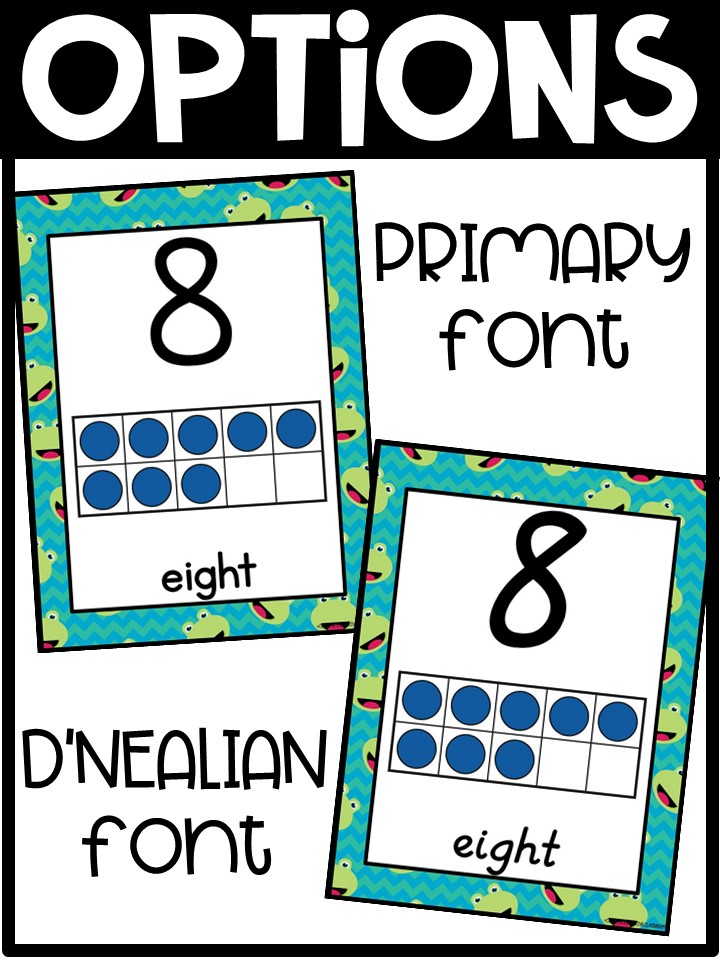 - Each Poster includes number, number word, and ten frames in rainbow colors.