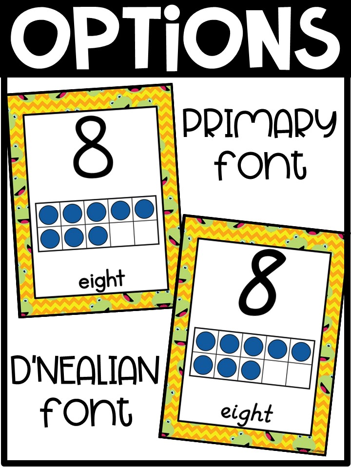 - Each Poster includes number, number word, and ten frames in rainbow colors.
