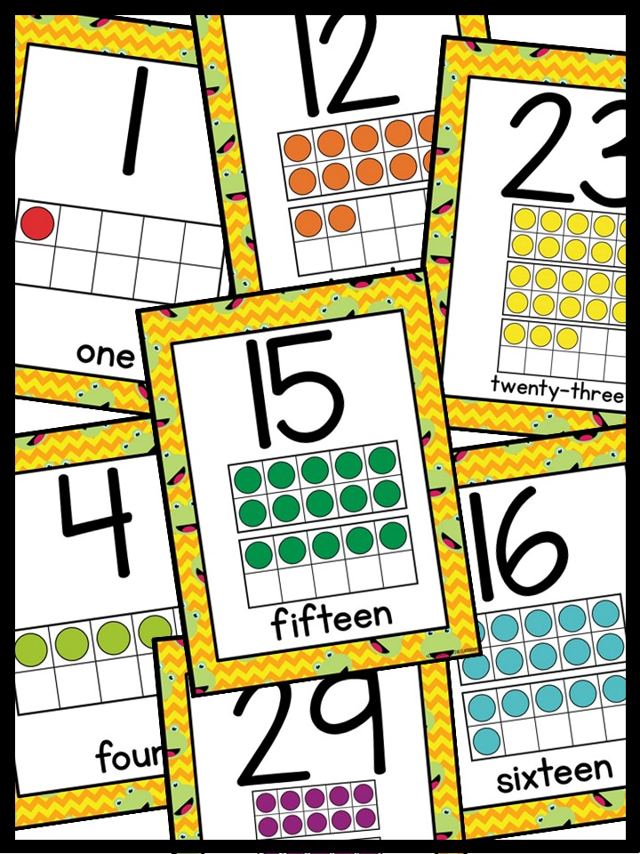 Use these number posters to teach number recognition in a fun and engaging way. You can use the number posters and cards during small group, whole group, circle/rug time, and center time.