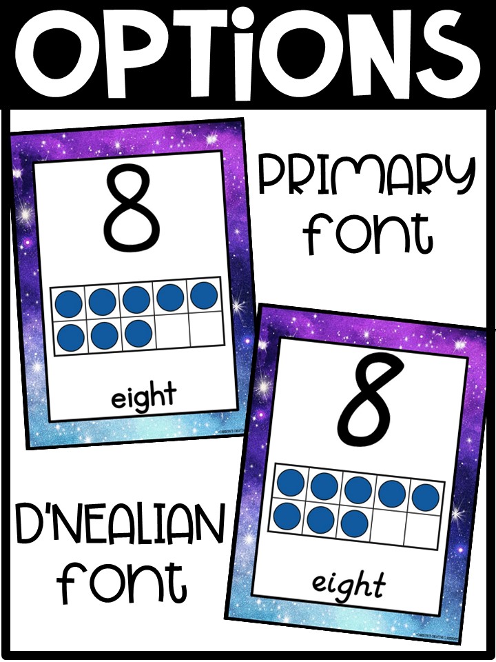 - Each Poster includes number, number word, and ten frames in rainbow colors.