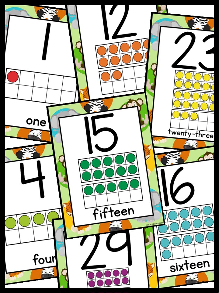 Use these number posters to teach number recognition in a fun and engaging way. You can use the number posters and cards during small group, whole group, circle/rug time, and center time.