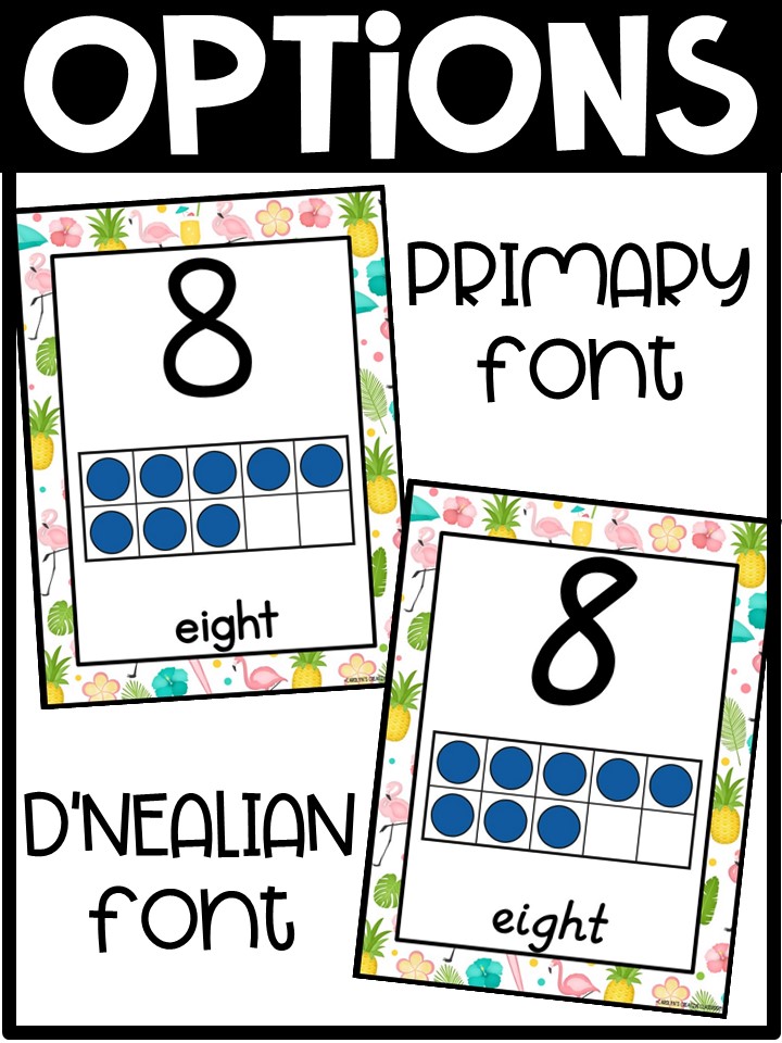 - Each Poster includes number, number word, and ten frames in rainbow colors.