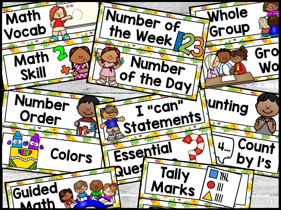 With this set, you will get the banner that says ” Math Focus Wall” . (Half sheet size)