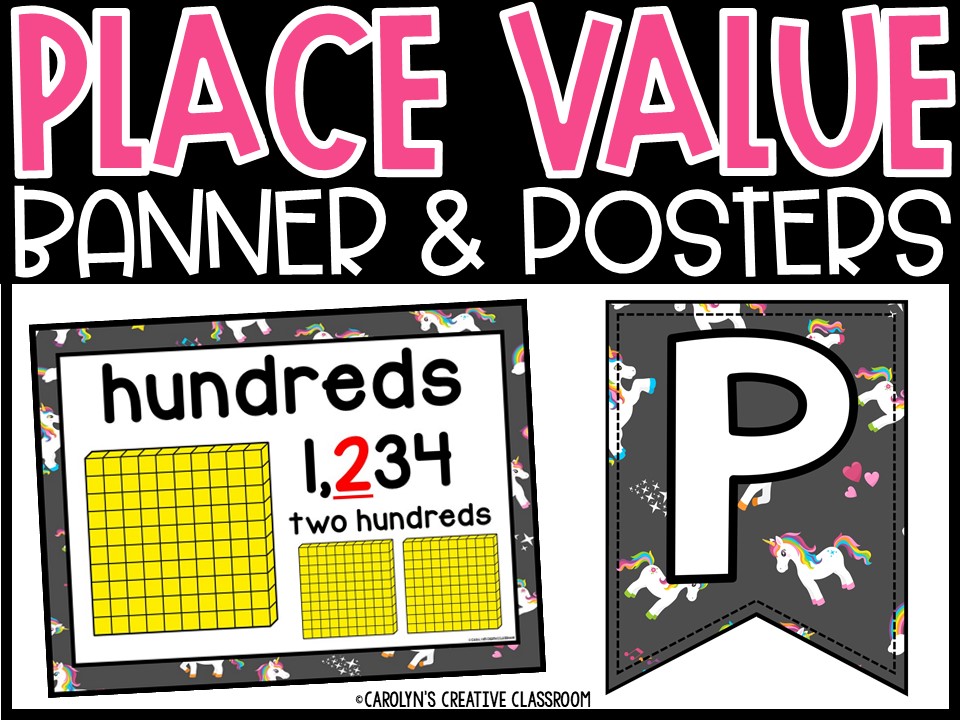 Use these place value posters to teach base ten block recognition and place value in a fun and engaging way. You can use the place value posters and cards during small group, whole group, circle/rug time, and center time.