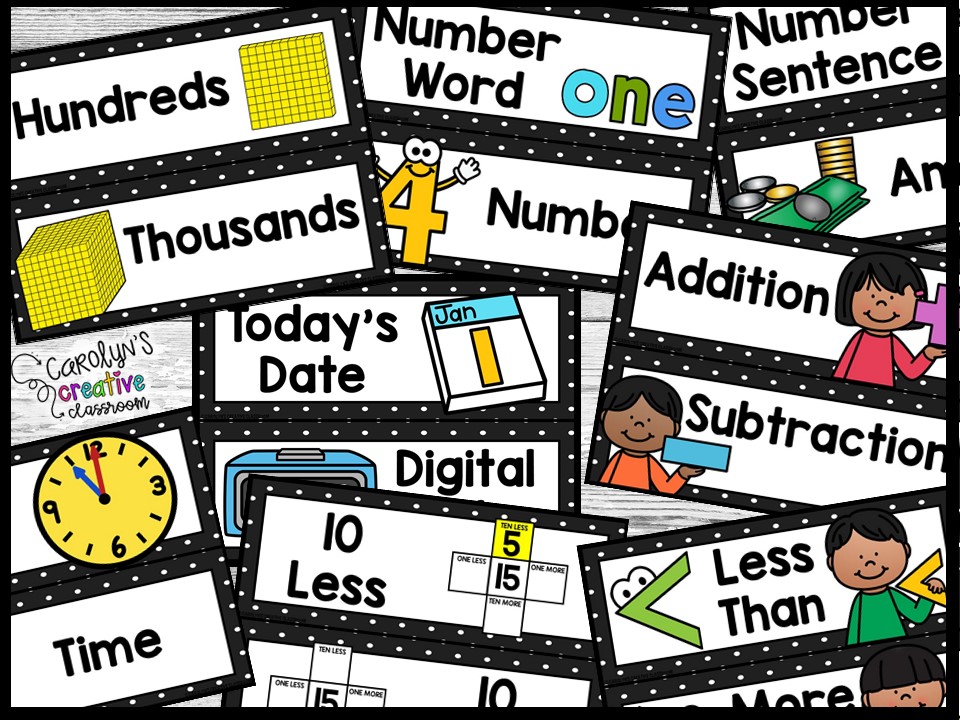 These focus wall headers are great for many different Math Series! You can put them in pocket charts, on the wall, on a white board and write the skill/strategy/etc. each week! I make mine magnetic so I can manipulate the header wherever on the whiteboard. You may also staple this to a Bulletin Board and add Anchor Charts below. So many uses!! This can be used in MANY different grade levels as well!