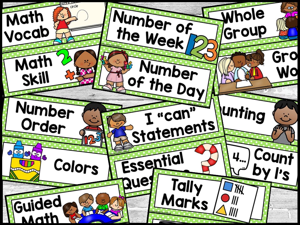 With this set, you will get the banner that says ” Math Focus Wall” . (Half sheet size)