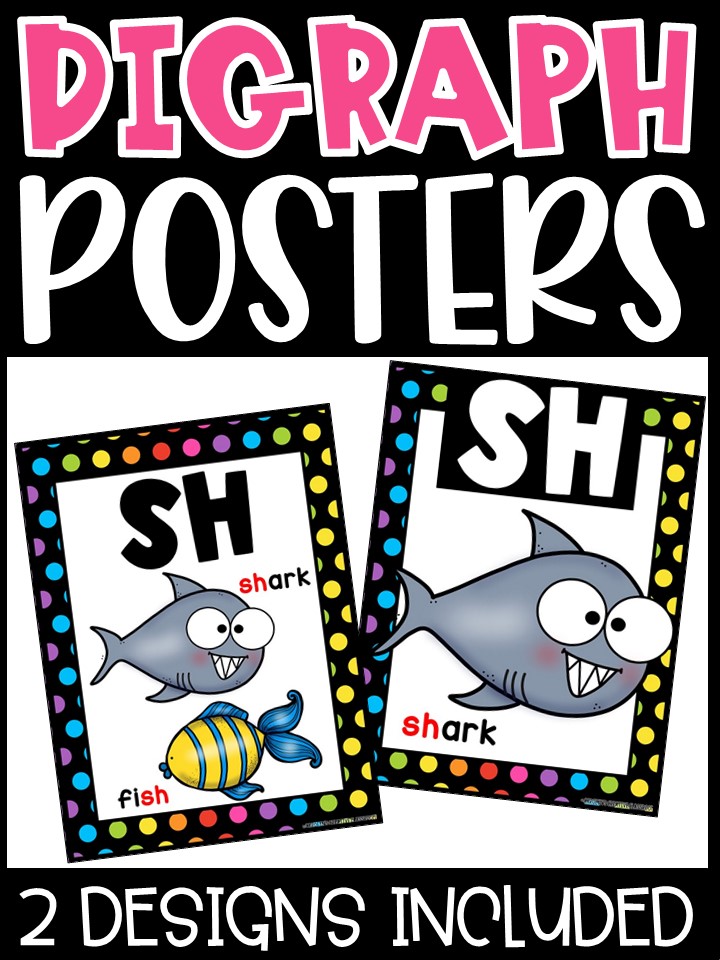 Foster digraph recognition and phonics development with these posters. Each card displays the digraph, a coordinating brightly colored image/images, and the appropriate text label.